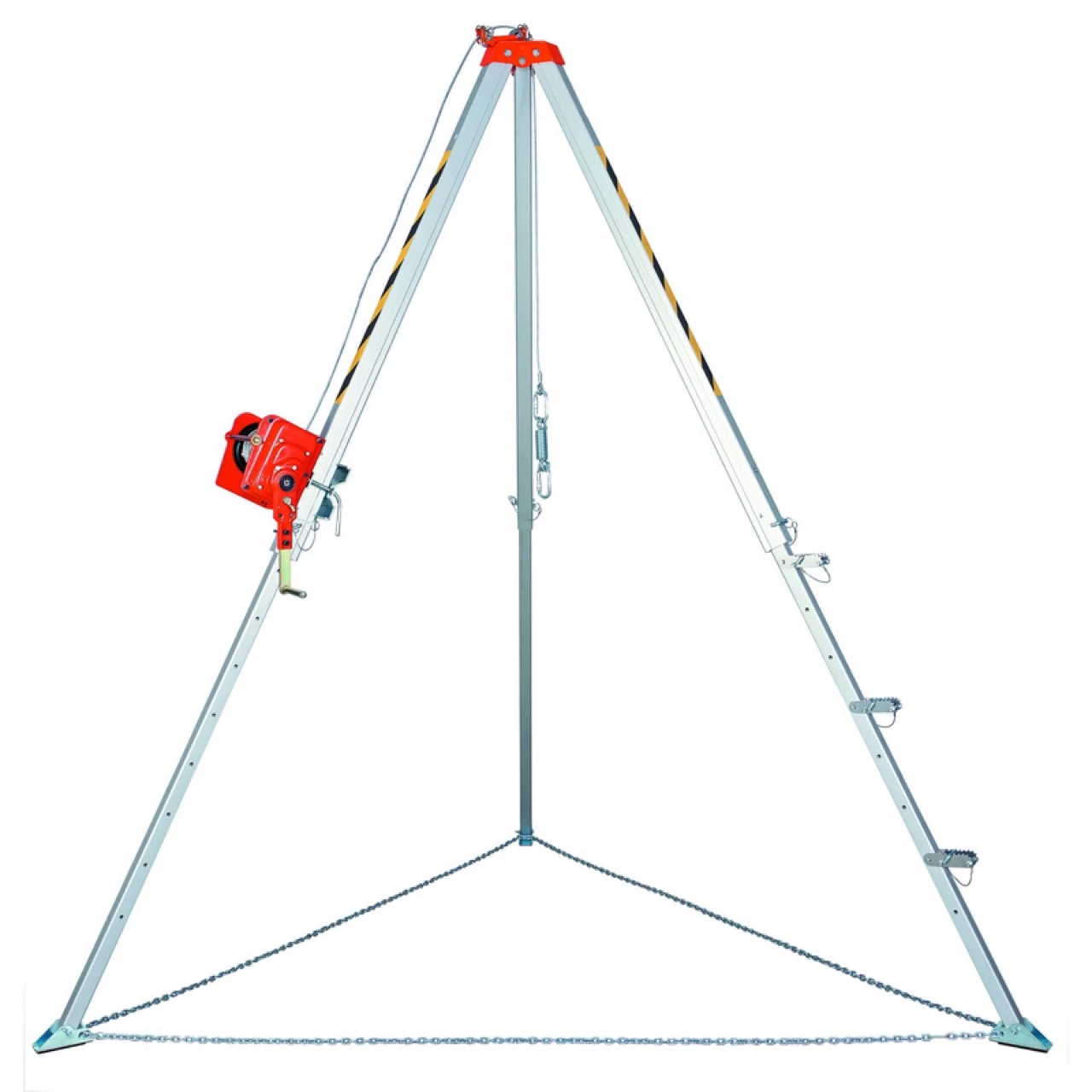 AT050 személyvédő lezuhanásgátló és karos mentőkészülék 20 m hosszú, 6,3 mm-es acélsodronnyal, forgókarral perceken belül felszínre lehet juttatni a max. 180 kg súlyú mentésre szorulót, rugós tartódob, feszes sodronykötélzet, emelkedő és ereszkedő funkció, súlya 13 kg, csavaros, alumínium rögzítőelem,